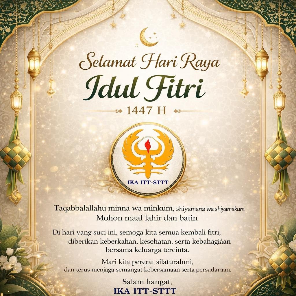 Taqabbalallahu minna wa minkum, shiyamana wa shiyamakum 🤲Mohon maaf lahir dan batin 🙏Di hari yang suci ini, semoga kita semua kembali fitri,diberikan keberkahan, kesehatan, serta kebahagiaan bersama keluarga tercinta.Mari kita pererat silaturahmi,dan terus menjaga semangat kebersamaan serta persaudaraan.Salam hangat,IKA ITT – STTTKanal medsos IKA ITT – STTT – Politeknik STTT 2023/2027:https://linktr.ee/IKAITTSTTTBANDUNG